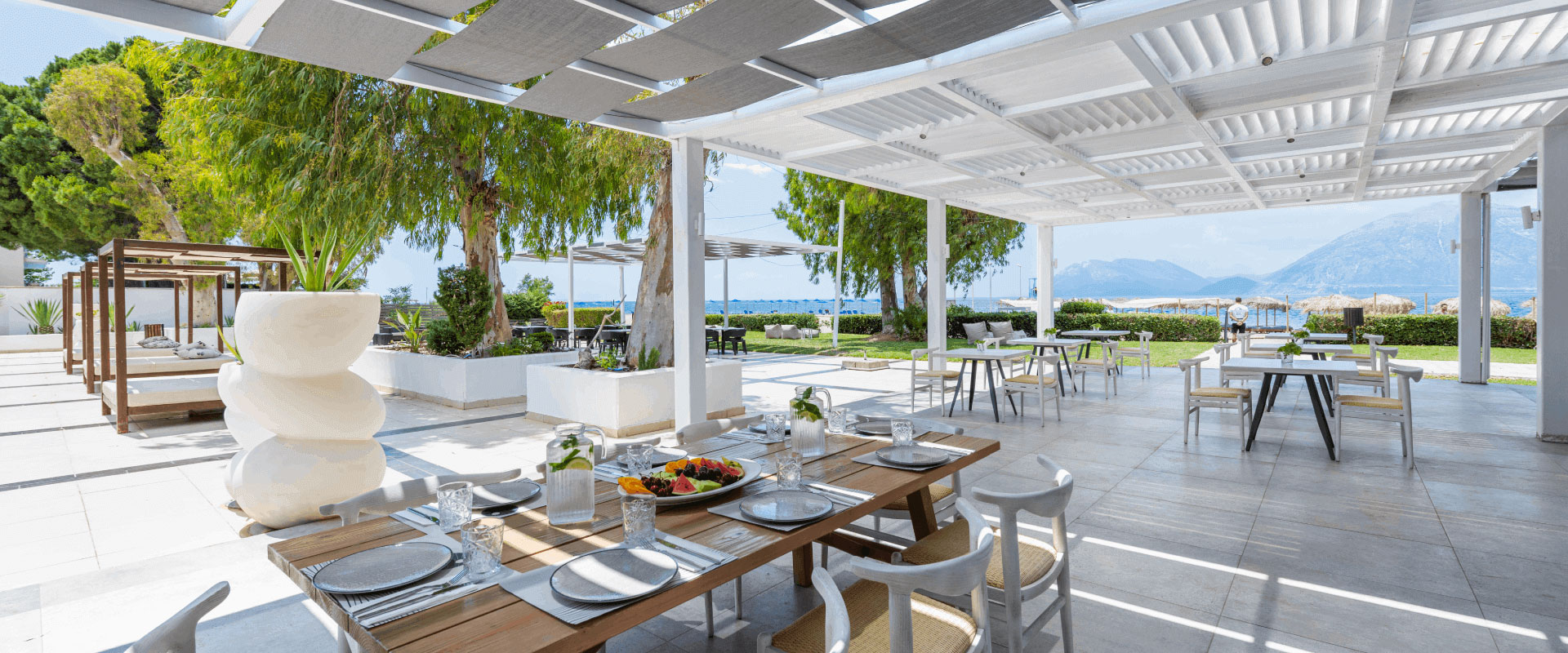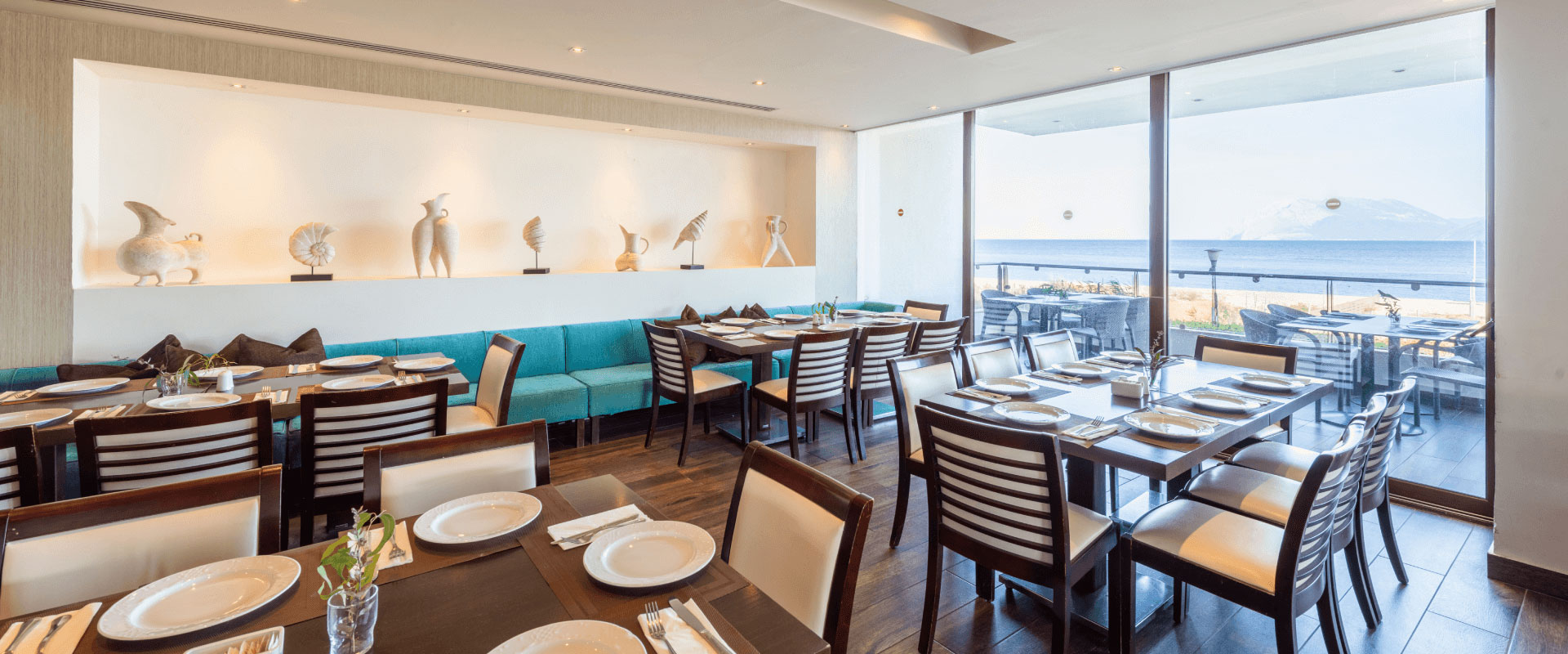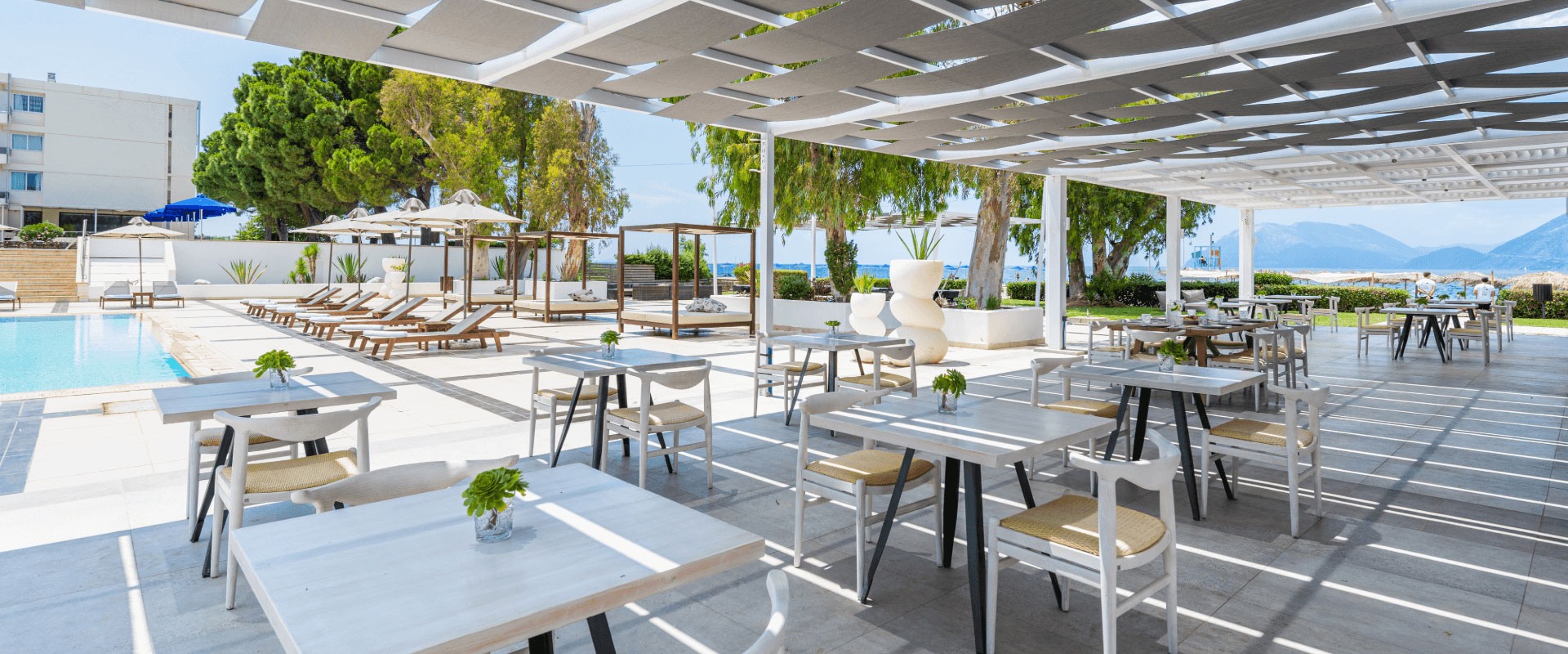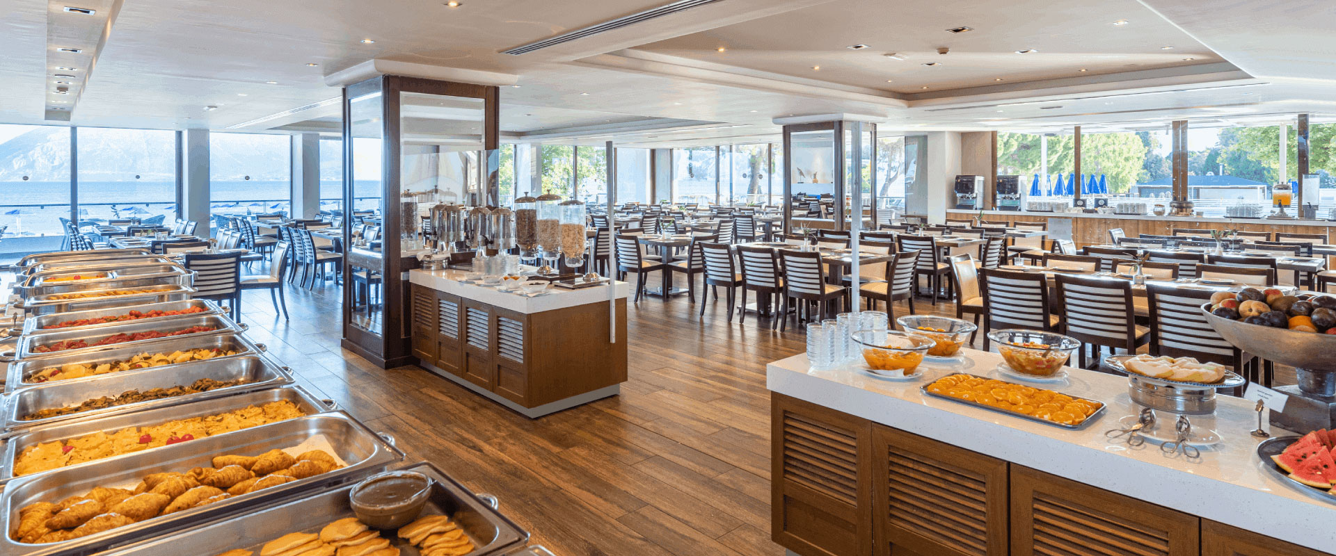 Θάλασσα και Θέα είναι τα δύο βασικά εστιατόρια του κυρίως κτιρίου που σας προσφέρουν πολλές επιλογές, σε εσωτερικό ή εξωτερικό χώρο, όλα με υπέροχη θέα στη θάλασσα. Και οι δύο σας υπόσχονται ένα υπέροχο και ευχάριστο ταξίδι γευσιγνωσίας στη Μεσόγειο και τη διεθνή κουζίνα!