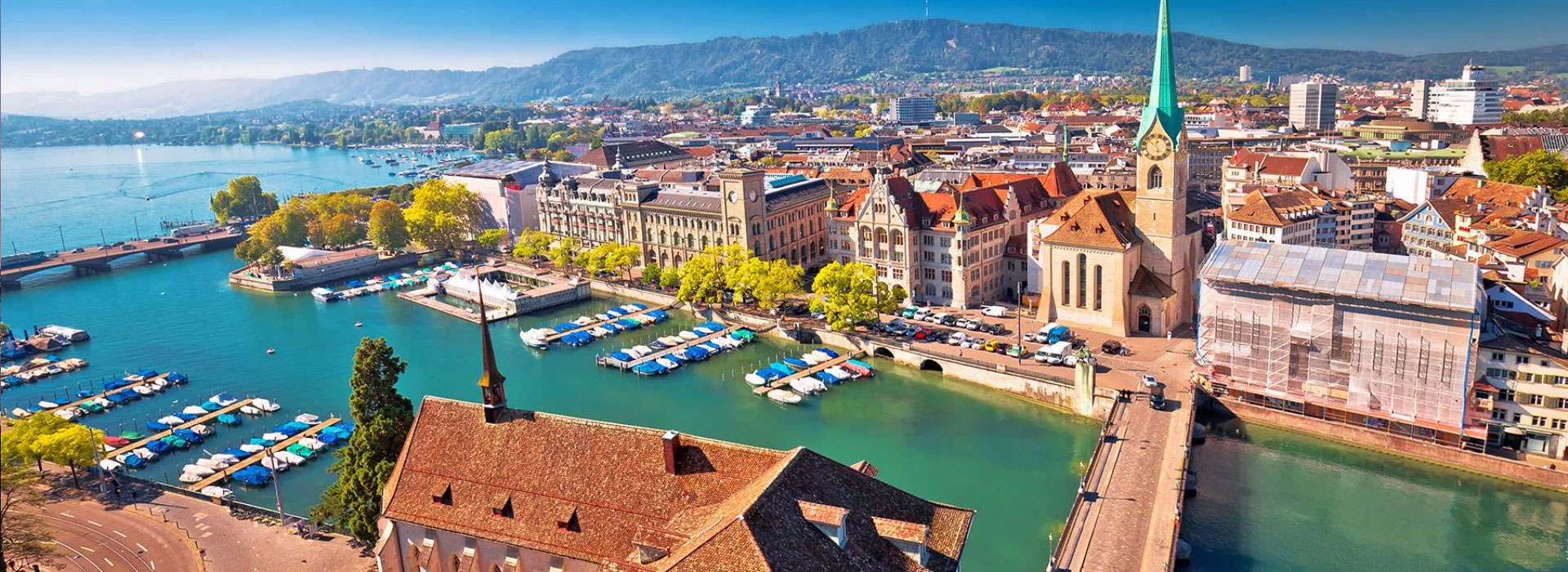 Το κομψό κέντρο της πόλης μας καλεί να το εξερευνήσουμε βήμα βήμα μέσα από τους δρόμους, τα καταστήματα και τα αξιοθέατα. Διακοσμημένη με τα αριστουργηματικά βιτρό του Μαρκ Σανγκάλ και του Ογκούστο Τζιακομέτι, η εκκλησία Φραουενμίνστερ, αλλοτινό μοναστήρι και καταφύγιο της γυναικείας αριστοκρατίας της Ευρώπης, συγκεντρώνει τα βλέμματα με τον γοτθικό της ρυθμό, τα έργα τέχνης, καθώς και τις ιστορίες που έχει να διηγηθεί στον επισκέπτη της. Η βόλτα στο Άλτσταντ, όπως ονομάζεται η παλιά ιστορική πόλη με τα στενά δρομάκια και τους εμπορικούς διαδρόμους, αλλά και την κεντρική Μπανχοφστράσε με τα επιβλητικά κτίρια που στεγάζουν το τραπεζικό δίκτυο της χώρας, τα πολυτελή μαγαζιά και τα σικ καφέ επιβεβαιώνουν την υποψία πως περπατάμε σε μια ιδιαίτερα φιλόξενη ευρωπαϊκή πόλη, ενώ η πανέμορφη παραλίμνια περιοχή της θα ολοκληρώσει την γνωριμία μας μαζί της με τον καλύτερο τρόπο. Στη βορειότερη πόλη της χώρας, μια ανάσα μόλις από τα σύνορα με τη Γερμανία, στην περιοχή του Σαφχάουζεν, ο Ρήνος σχηματίζει μια ορμητική υδατόπτωση, δημιουργώντας ένα θέαμα άκρως καθηλωτικό. Οι υπέροχοι καταρράκτες του είναι οι μεγαλύτεροι της Ευρώπης με πλάτος 150 μέτρων και ύψος που φτάνει τα 23 μέτρα! Στις όχθες του Ρήνου, το λιλιπούτειο χωριό Στάιν αμ Ράιν με τα ξύλινα κτίρια του 16ου αιώνα και τις τοιχογραφίες στην πρόσοψη μας κάνουν να νιώθουμε λες και βρισκόμαστε μέσα σε κάποιο παραμύθι των αδερφών Γκριμ.